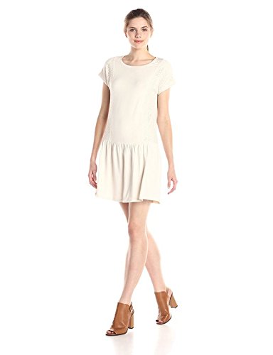 Drop-waist dress with short sleeves and lace side panels