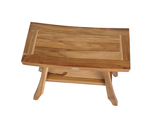 Studio : DecoTeak Publisher : DecoTeak Product Description EcoDecorsTM develops unique home decor furnishings using recycled, reclaimed, and upcycled materials. We focus on using materials that let the natural beauty of wood be highlighted included the beautiful natural wood grains, and coloring variations in teak that is naturally indigenous to the species. We have developed a coating process that both protects the wood, and brings out the natural grains and colors of the teak wood. Every EcoDecorsTM furniture and accessory uniquely highlights its materials. EcoDecors TMis a small family owned and operated company pricing itself on quality, value, and service. We source directly from small rural workshops in developing countries. Our craftspeople use artisan techniques handed down from generation to generation to craft cast off doors, old boats, buildings, brides, rail road ties, teak roots, and other material into one of a kind functional works of art. To assure our quality we employ our own inspection staff on site and also do 100% quality re-inspection in the USA. This 24" length classic traditional teak shower bench with a contemporary design flair. The included standard utility shelf provides extra storage for toiletries or towels. This compact size of 24" length x 12" width x 18" height provides a compact footprint that will fit in most tight areas. These stools include foot leveling pads to provide extra flexibility and stability to allow stabilization due to any minor slope, and uneven surfaces, like shower floors. Teak is naturally water, mold, and mildew resistant due to its natural density and high oil content. It has been the wood of choice for hundreds of years of luxury boat builders. This natural resistance has been supplemented by using our proprietary EcoDecors sealer which is a deep penetrating stain with added mold, mildew, and fungus inhibitors. It provides the ability for this teak furniture to be used outdoors as well as indoors. 0