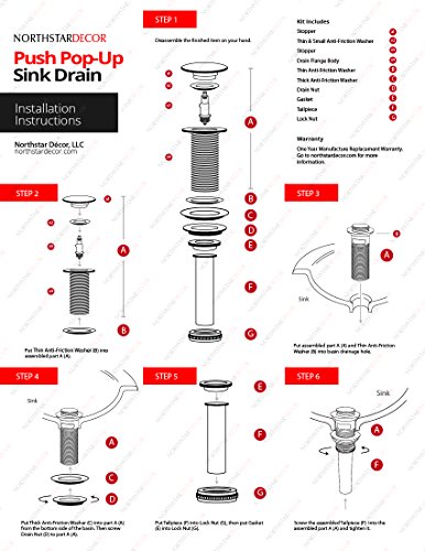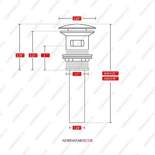 NORTHSTAR DECOR NDLPD Lavatory Push Pop Up Drain for All Bathroom Sinks. Brass Constructed Body with Stainless Steel Waste Pipe. Available in 2 Configurations & in 3 Finishes.