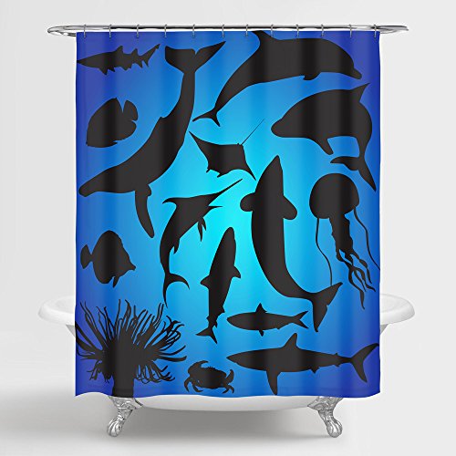 Sea Creatures from Below Shower Curtain & 12 Rings - Ocean Theme Bathroom Decor - 100% Waterproof Polyester and Mildew Resistant