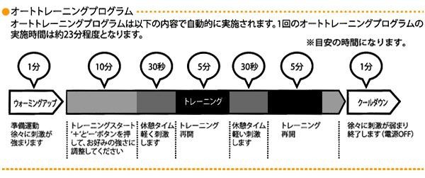 | EMS(ElectricalMuscleStimulation)で1分間にMAX1000回筋肉を刺激。約23分間のオートトレーニングプログラムでテレビを見ながら、ゲームをしながら、お友達とおしゃべりしながらでもご使用いただけます!!ボタン一つで簡単に操作でき、コードレスだから邪魔にもなりません!!また、15段階刺激調整で運動効果に合わせた設定が可能となっております。 |