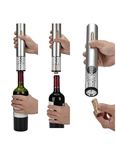Operating Instruction Open the battery compartment cover and put 4 "AA" batteries into compartment by match " " and"-" marks on the battery and compartment. Use the foil cutter to remove any foil seal covering the cork before removing the cork Place the wine opener on top of a wine bottle vertically Hold the electric wine opener firmly and press the lower part of the switch. The corkscrew spiral will turn in a clockwise direction and enter the cork and then gradually pull cork out of bottle. Lift the electric wine bottle opener away from the bottle. Remove the cork by pressing the upper part of the switch and the spiral will turn in the counter-clockwise direction and release the cork. Attach the wine pourer to bottle and reduce drips and spills while pouring. The double air intake system makes wine releasing more flavors and aromas. Insert the universal wine stopper into the bottle and pump for several times if there is wine left in bottle. ? Note For indoor use only Keep it away from children to avoid any hurt Do not put your finger into hole of corkscrew in any case, it may cause serious injury Do not put electric wine opener in water or other liquid 4 "AA" batteries not included Read the user manual carefully before using ? Package Included: 1x Electric Wine Bottle Opener 1X Wine Pourer 1x Foil cutter (Dock) 1x Vacuum Wine Bottle Stopper 1x Instruction Manual 0 |