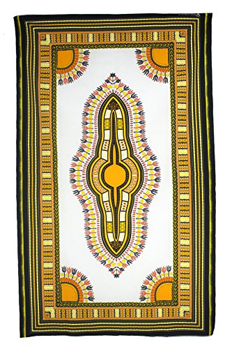 Vipada Handmade's Dashiki Fabric Angelina Print 100% Cotton (White and yellow)