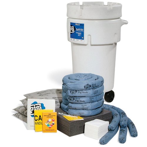 -. Title : New Pig KIT272 123 Piece Spill Kit in 50 Gallon Wheeled Overpack Salvage Drum, 30 Gallon Absorbency