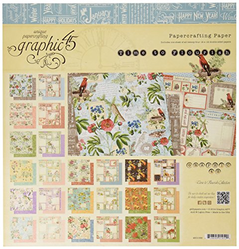 Graphic 45 is delighted to announce an alluring new calendar collection, time to flourish. Smell the beautiful blossoms yearlong, with the stunning botanical patterns and our ever versatile cut-aparts. The rich color palette reflects the iridescence of the four seasons. This collection is going to dash off your shelves and will be perfect for calendar projects, cards classes, giftware and much more. The creativity will last all year long with this sensational new collection from graphic 45!.Feature