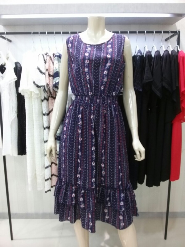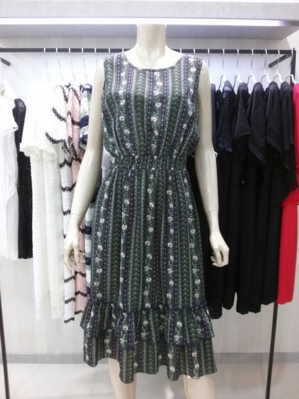 허리밴딩으로 편안하게 착용하기 좋은 밑단프릴 민소매 원피스예요~^^
