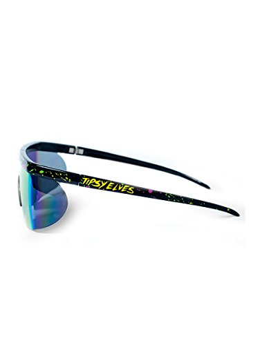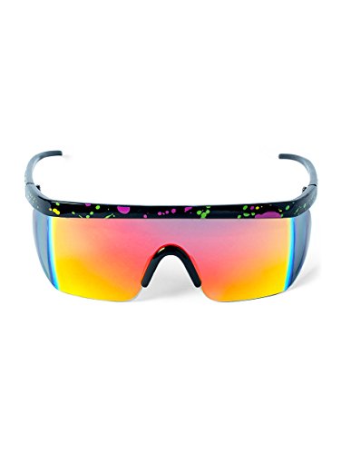 Warning, if you wear these reflective sunglasses you will receive comments about the 80's. Retro, Neon, 80's, and BRIGHT are excellent descriptors for this pair of mirrored sunglasses. The frames look as if they have been splattered with neon paint and the lenses seem to have gotten a pearlescent paint job that fades from neon orange into yellow in the front and then into blue on the sides. No matter when or where you rock this pair of retro mirrored sunglasses you will demand attention.Feature