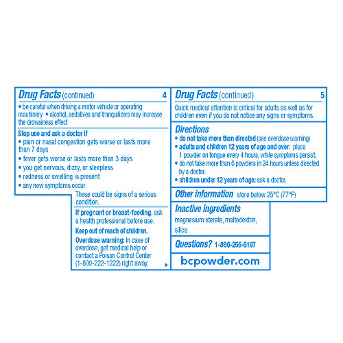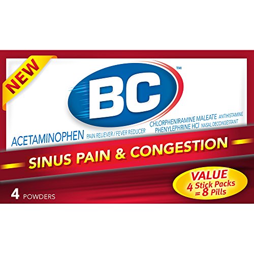 ReleaseDate : 2017-05-15 Studio : BC Publisher : BC Binding : Health and Beauty Product Description Introducing BC Sinus Pain Congestion: With a powerful pain reliever, a decongestant, and an anti-histamine, now you can get fast relief at the speed of powder from the pounding sinus headache that can accompany allergies and congestion from colds and flu. 0
