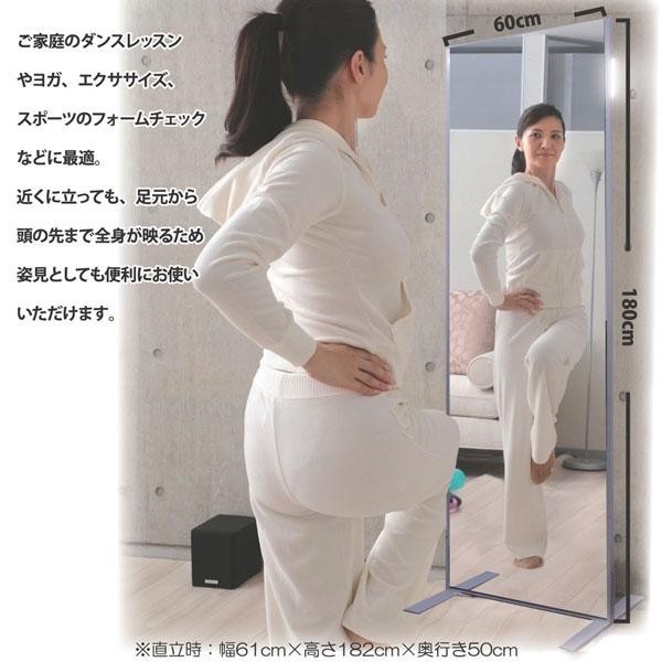 | サイズ | ミラー:幅60×高さ180×厚さ2.7cm、スタンドサイズ:幅61×高さ16.3cm(脚部分長さ50cm) 個装サイズ:185×66×8cm |
