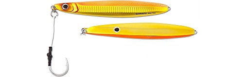 The new 2015 Shimano Butterfly Flat-Side Jigs with hook have been innovatively designed to perform the best action in the most common situation of angle-vertical jigging from a drifting boat The rearcenter weight balance design lets the Shimano Flat-Side Jigs fall to the bottom quickly with a swinging motion Hot new colors and now with hooks