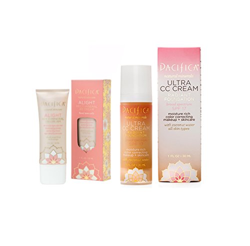 -. Feature : This bundle includes one 1 fl. oz. of Pacifica Ultra CC Cream Radiant Foundation (Warm/Light), and one 1 fl. oz. of Pacifica Alight Multi-Mineral BB Cream with Damascus Rose and Coconut Oil / Winner of the 2014 Natural Health Beauty Awards "Best CC Cream!" Instantly illuminate and perfect your skin with specially adapted color correcting minerals and multi-action natural beneficials including coconut water. / 100% physical broad spectrum SPF 17 to protect your skin from the sun's harmful UVA/UVB Instantly illuminates and perfects skin. Contains a blend of natural beneficials to provide anti-aging benefits and subtle Jasmine fragrance. Specially adapted color correcting minerals adapt to your own skin tone 100% recyclable airless container.