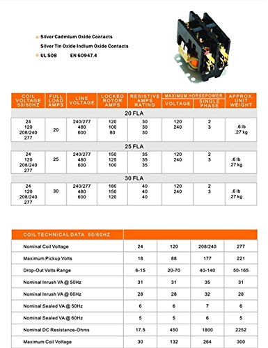 YuCo CN-PBC302-24 DEFINITE PURPOSE CONTACTOR 30A 2P 24V 30 FLA 40 RES FITS DP30C2P-F AC & HEATING CONTACTOR AIR CONDITIONING CONTACTOR HVAC CONTACTOR