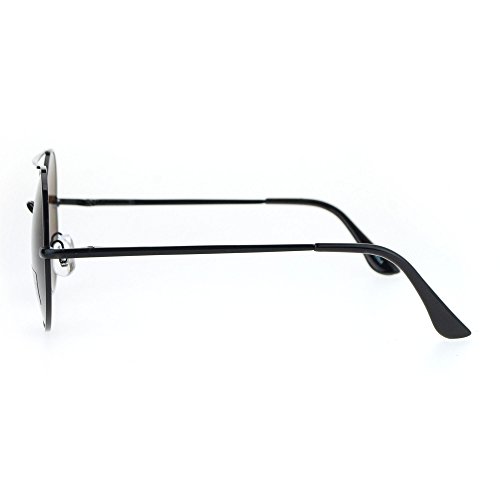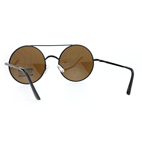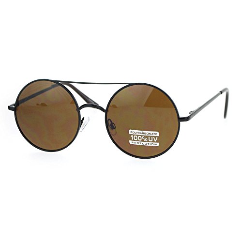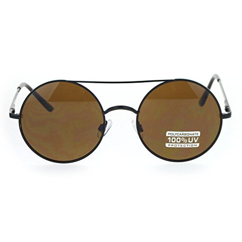 Retro Circle Round Wire Rim Flat Top Double Bridge Lennon Sunglasses Black Brown
