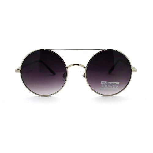 Retro fashion round circle frame sunglasses with flat top double bridge, also spring hinge.