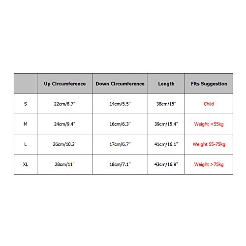 -. Feature : 1. Quantity: A single (one piece) sleeve ONLY / 2. Material: Lycra compression Fabric are durable, breathable, comfortable & lightweight, offers extra calf and shin guard while exercing, minimizes damage in the lower legs, enhances blood circulation, increases strength during workouts, allows muscles to work efficiently / 3. Protective: Helps protect legs from abrasions, blisters, and chaffing. Helps improve knee stability while supporting surrounding muscles. Compression fabric reduces soreness, cramping and fatigue throughout legs. Leg muscles stay warm and active / 4. Temperature Regulating: Advanced temperature regulating properties help retain heat to soothe muscles and wick away moisture / 5. Anti-slip: A hidden, soft silicone strip at the top that prevents the leg sleeve slippage down during exercise or getting sweaty