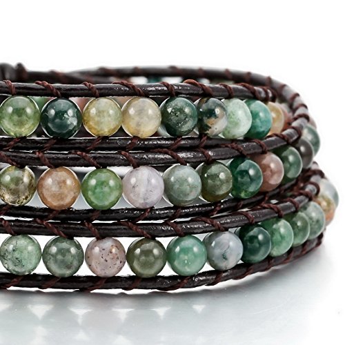 Colorful Alloy Genuine Leather Bracelet Bangle Cuff Rope Simulated India Agate Bead 3 Wrap Adjustable
