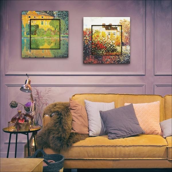 フレームに名画をプリントし、表面はクリアーラッカーを何度も塗り重ねたハイグロス加工です。中の絵は凹凸のあるゲル加工を施し、フレームとのテクスチャーの違いが深みのある仕上がりです。 |