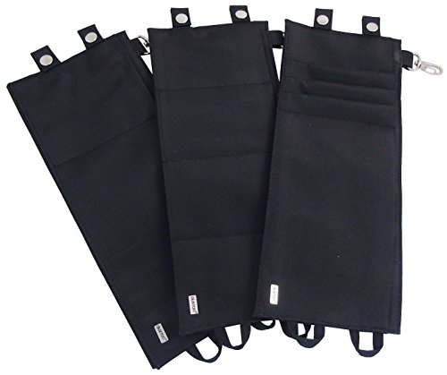 Organizer pouches are made from a sturdy nylon fabric and have a permanent stainless steel gated key clip. Each one features two snaps on one end and two loops on the other so that pouches can be attached to the purse or linked together. They are the perfect solution for purses, backpacks, briefcases, luggage, or any other bag that needs help with organization. Overall dimensions of each organizer is 12"W x 5"H (not including 1" snaps & loops at each end).Feature