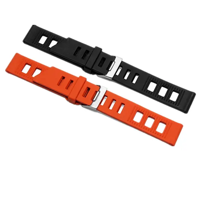 | [해외] Carlywet 20 미리메터 남성 여성 방수 orange 블랙 실리콘 고무 스트레이트 엔드 손목 시계 밴드 스트랩 실버 핀 버클 |