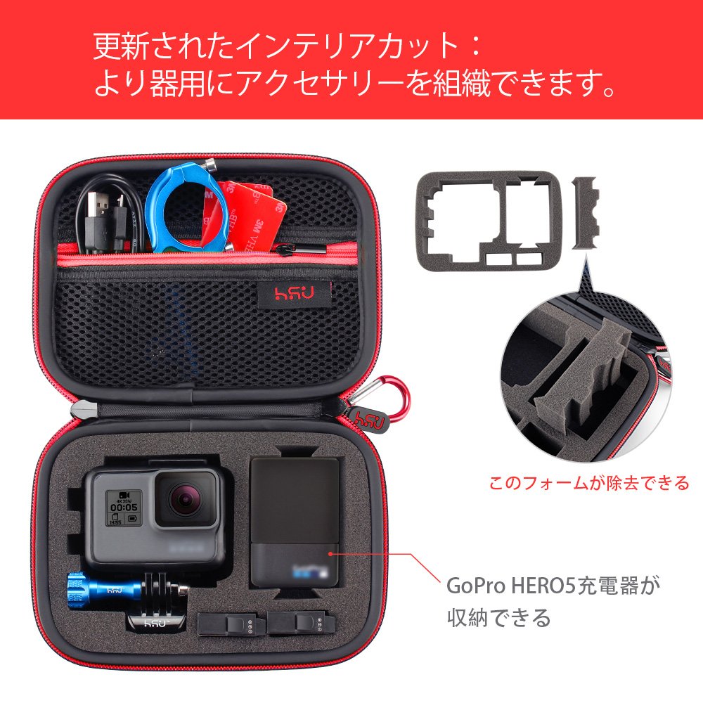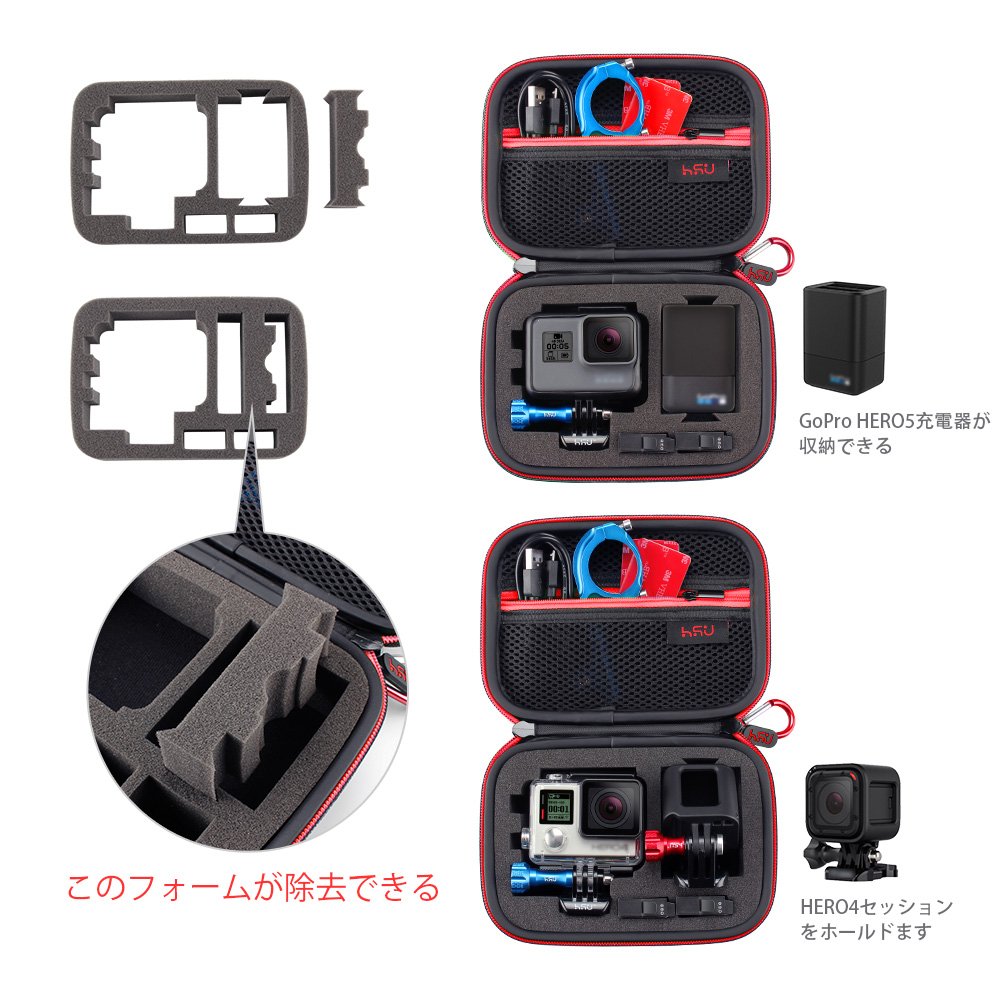 The sponge interior can protect the camera well, and can store other flat mounts, quick release buckle, thumbscrews, USB cable, memory card, etc.