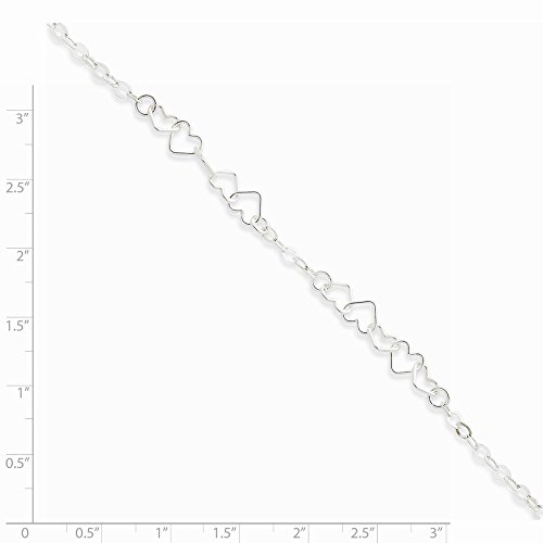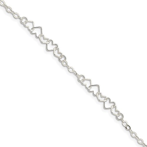 Solid 925 Sterling Silver 9inch Polished Fancy Heart Link Anklet 9" - with Secure Lobster Lock Clasp (6mm)
