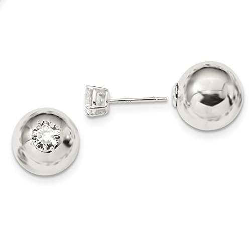 ICECARATS DESIGNER JEWELRY 925 STERLING SILVER 6MM CUBIC ZIRCONIA CZ FRONT BACK POST STUD BALL BUTTON STUD EARRINGS