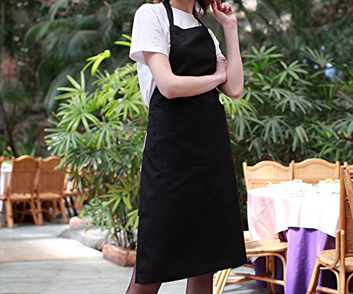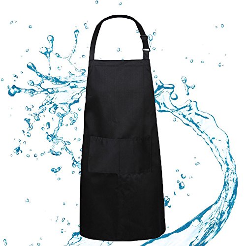 BOHARERS Bib Apron Waterproof Adjustable Neck for Women Lady Man Unisex with 2 Pockets Kitchen Restaurant Cooking Large Size 27 x 29 inches, Black