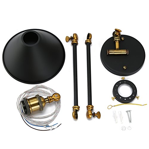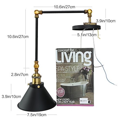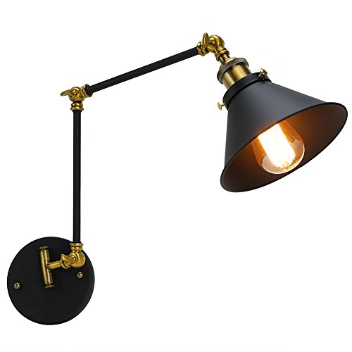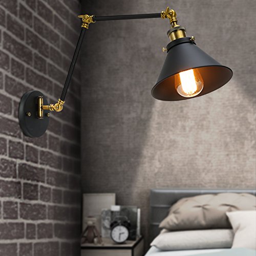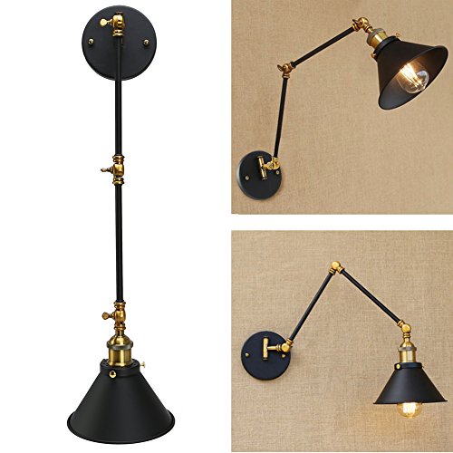 Fuloon Vintage Retro Countryside Golden Wall Lamp Long Arm Pole Swing Arm Wall Mount Light Sconces (bulbs not included) (Black)