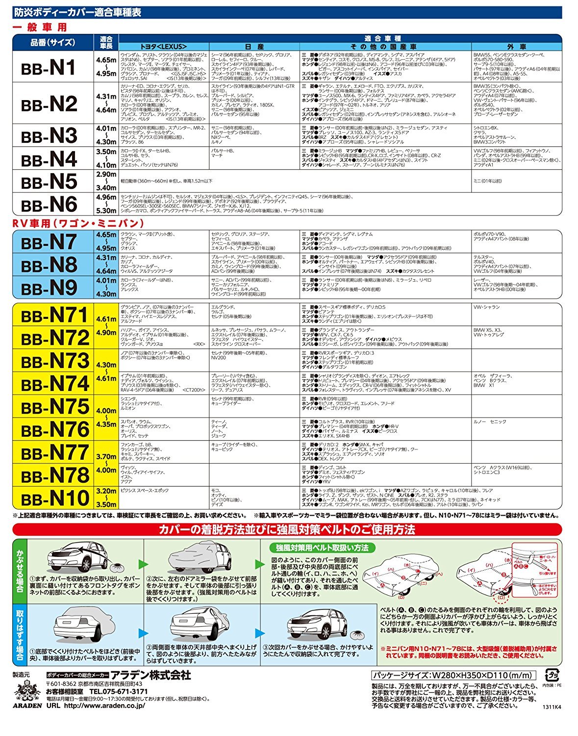ARADEN (Araden) body cover flameproof type medium-sized 1 [fit vehicle length 4.65m ~ 4.95m] BB-N1