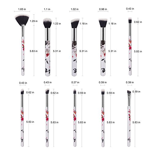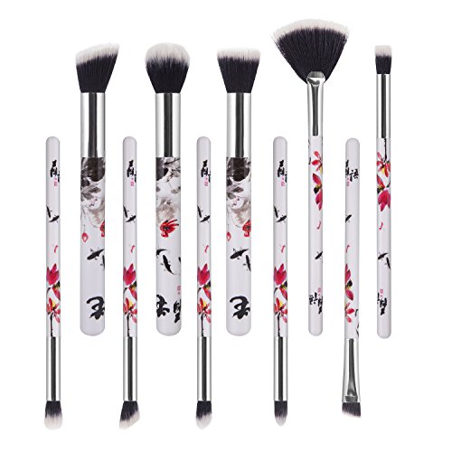 Makeup Brush Set ,Yedda 10 Pieces Unique Style Professional Makeup Brushes Set Synthetic Powder Eyeshadow Brow Nose Fan Brush with Travel Case(Chinese...