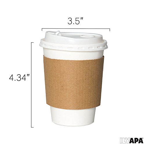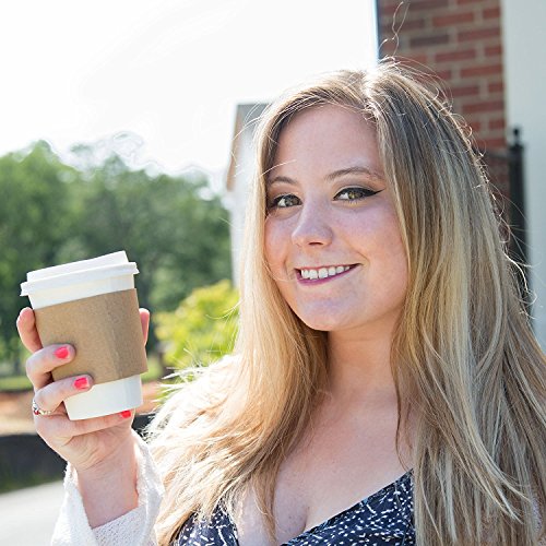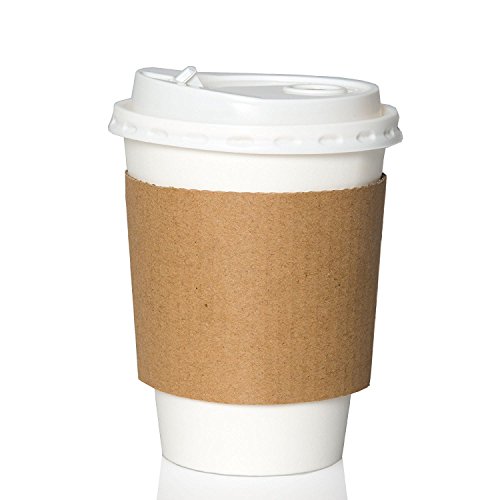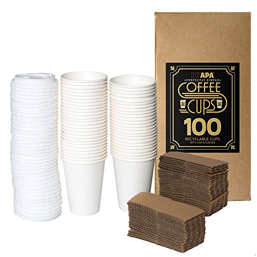 100 Pack - 12 oz To Go Coffee Cups with Sleeves & Lids - Disposable & Recyclable White Paper Travel Coffee Cups
