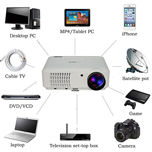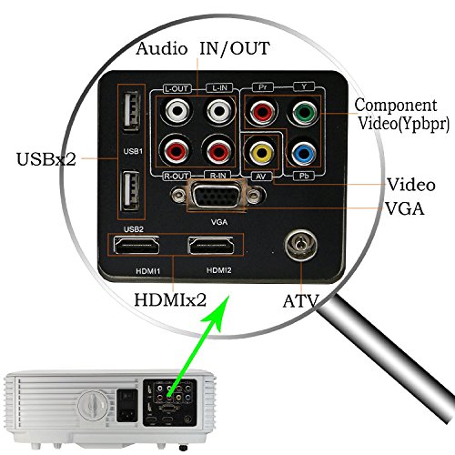 4. Various multimedia ports VGA HDMI USB AV TV slots which make it convenient to hook up smartphone/iPad/iPhone/PC/laptop/game console/Blue-ray player/DVD player/TV/ XBOX /PlayStation3/macbook pro/cable box with this projector