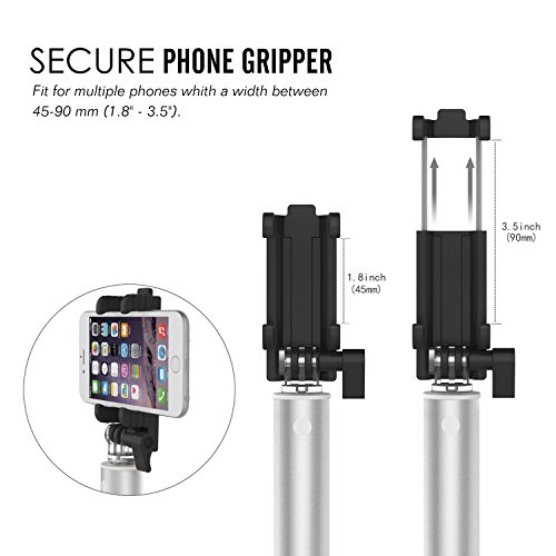 - Title : MoKo Selfie Stick, Self-portrait Monopod Extendable Wireless Bluetooth with Built-in Remote Shutter Camera Handheld Stick with Adjustable Phone Holder for iPhone 6s / 6s Plus, Galaxy Note 5, SILVER