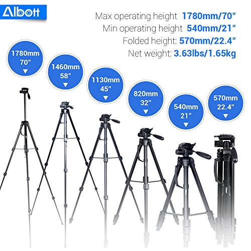 3.63 lbs Net weight; 8.8 lbs Load Capacity; 4-Section Tripod 21"-70" Height Range; Adjustable Center Column Converts to 5-Section Monopod 18"-65" Height Range