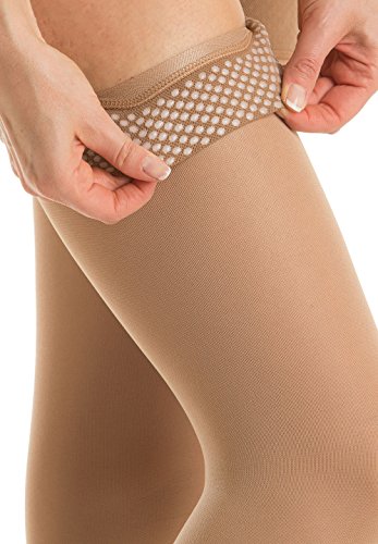 -. Feature : Soft microfiber medical compression Thigh High W/Laces (1 pair) - closed toe / Class 2 - graduated compression of 20-30 mmHg / Ideal to prevent thrombosis and embolism, treat mild chronic venous insufficiency, and reduce symp of thrombophlebitis and more severe varicose veins. / Long-lasting and opaque graduated compression Thigh High W/Laces in soft microfiber with reinforced toes and heels, hypoallergenic silicone top bands and invisible flat seams for maximum comfort and durability. / High quality, 100% Made in Italy - For CORRECT SIZING, please refer to the SIZE CHART included with IMAGES.