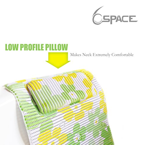 6-Space Luxury Flower Design Spa Bath Mat w/ Neck Rest Bath Pillow, Non-Slip 30 Suction Cups Durable Extra Long Bathtub Mat Pillow Cushion