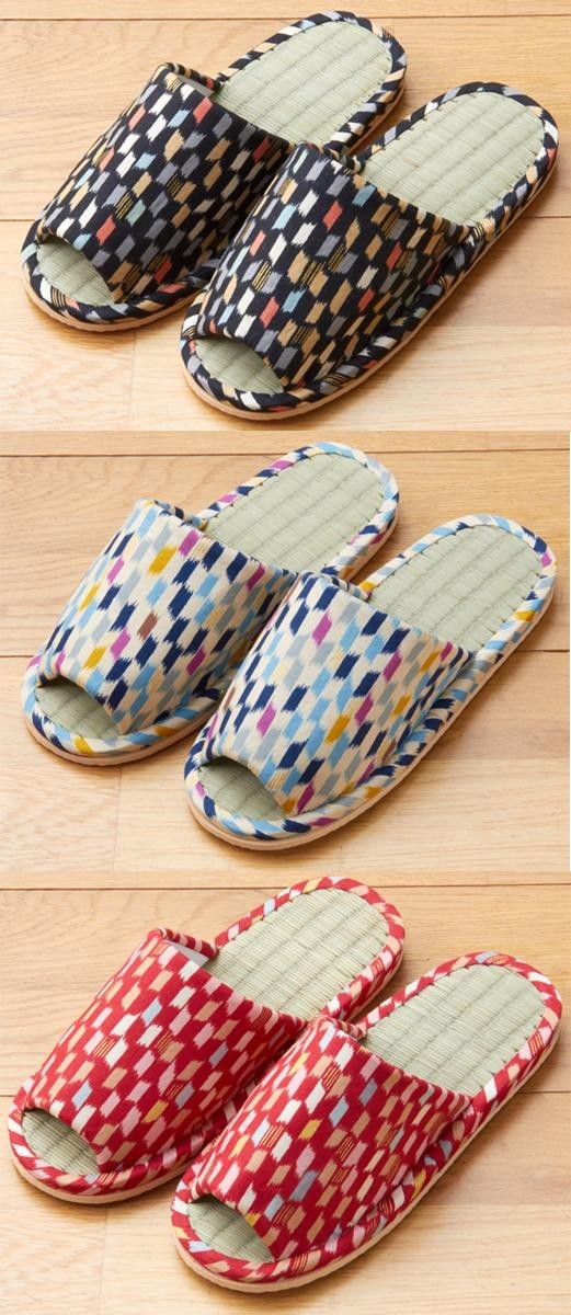 | 春夏など暖かい季節にピッタリ☆い草を使用した通気性抜群のスリッパです。オシャレで落ち着いた和のデザイン♪ |
