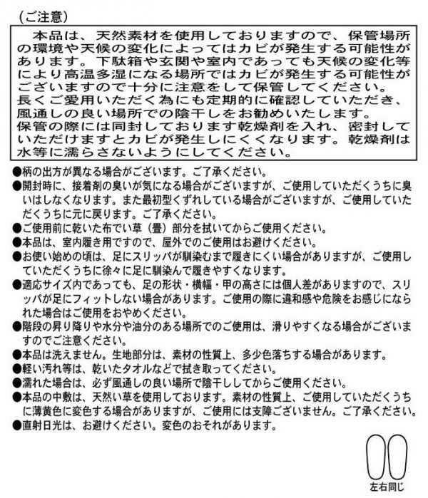 | 素材・材質 | 生地:ポリエステル 中敷:い草 中材・底材:EVA樹脂 |