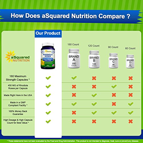 MAXIMUM STRENGTH RHODIOLA ROSEA: Our potent Rhodiola Rosea formula contains 180 capsules in every bottle, is backed by our 100% MONEY BACK GUARANTEE (30 days) and is made right here in the USA in a GMP compliant facility. Rhodiola Rosea is known as an Adaptogen, helping the body adapt to, and overcome, physical, emotional and environmental stress. The Rhodiola plant is native to the arctic regions of Asia, Europe and even Siberia. Rhodiola has been used for medicinal purposes for many years. *