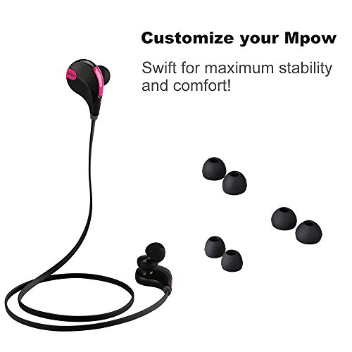 Feature : 【UPDATED SWIFT】 Swift New Version upgraded a lot in Bluetooth tech and PCB board with the feedback of Swift users, more stable signal and worry-free for sweet during exercises. / 【EXCELLENT MUSIC QUALITY】 In-ear ear buds design with apt-X ensure high quality stereo sounds and better outdoor volume. Mpow Swift features an excellent sound, especially the low sound density. / 【ERGONOMIC DESIGN】 Comfortably fits either ear. Ergonomics Design and 3 pairs sport fit stabilizers will guarantee more stable and perfect fit for work-out. It will stay firmly and comfortably in place. / 【EXCELLENT PLAYING TIME】 Extra long built-in battery provides up to 5 hours playing time for a 2-hour full charge, Bluetooth 4.0 technology provide you more time with Mpow Swift! / 【SIMPLE TO USE】 Convenient in-line volume and microphone control allow you to adjust sound to your jogger, running and other Sport preference.