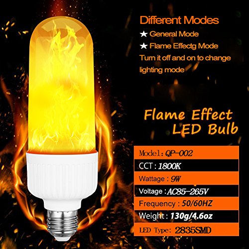 - 【Safe & Green Energy Saving】Save 85% of electricity from traditional flame. Durable decorative bulb with long lifespan up to 5,000 hours. This LED flame bulb is made of epistar chips and retardant material. Excellent heat dissipation and environmental protect, no harmful substances, no UV and infrared radiation.