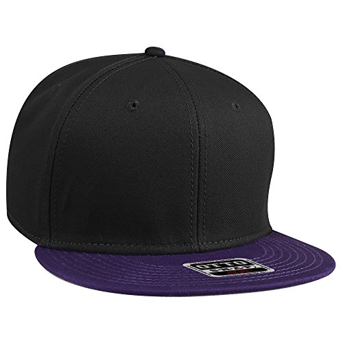 (Otto Caps)/Accessories/Hats/DIRECT FROM USA/Otto Snap Cotton Twill Round Flat Visor 6 Panel Pro Style Snapback Hat - Pur/Blk/Blk