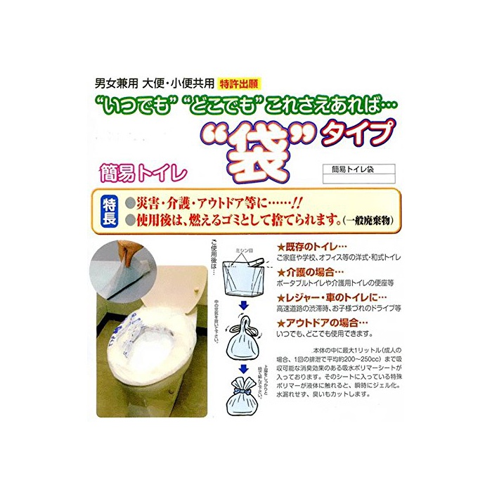 단수 시 등에 화장실로 세트 하는 것 뿐(만,만큼)!개호용 화장실이나 포터블 화장실,아웃도어 에서의 사용으로도 적합하게 있습니다. 사용 후는 불타는 쓰레기로서 버려집니다.