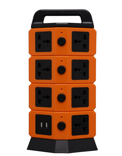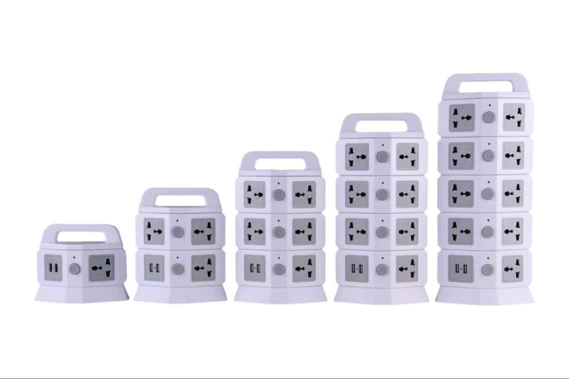 3 Layer 2 USB Ports UK Plug Vertical Tower Socket/