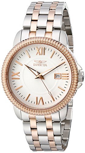 -. Binding : Watch -. Brand : Invicta -. Color : white -. Department : mens -. EAN : 0886678223169 -. Feature : Date window at 3:00 / White dial with rose gold tone and white hands, rose gold tone hour markers and roman numerals; luminous; 18k rose gold ion-plated stainless steel bezel; sapphire crystal; stainless steel case and bracelet with 18k rose gold ion-plated stainless steel accents / Swiss-quartz movement / Case diameter: 40mm / Water resistant to 330 feet -. Label : Invicta -. Manufacturer : Invicta -. Model : 18107 -. MPN : 18107 -. PackageQuantity : 1 -. PartNumber : 18107 -. ProductGroup : Watch -. ProductTypeName : WATCH -. Publisher : Invicta -. Studio : Invicta -. Title : Invicta Men's 18107 Specialty Analog Display Swiss Quartz Two Tone Watch -. UPC : 886678223169
