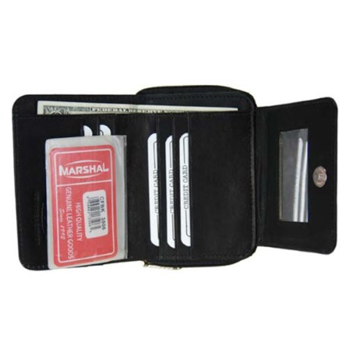 Product DescriptionGenuine Leather Ladies Wallet Credit Card Case;Material: Genuine Leather;Style: Bi-fold;SKU Code: #506CF;Size: 4 1/4" x 3 1/2";Other features: Snapping enclosure; ID Window; Credit Card slots0