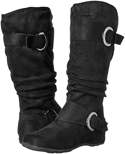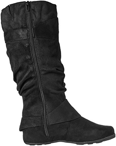 Studio : Brinley Co Publisher : Brinley Co Binding : Apparel Product Description Complement your outfit with these slouchy mid-calf boots by Brinley Co. Buckle and strap details highlight the upper on these round toe boots. Constructed of soft faux suede uppers and rubber soles, man-made lining completes the look of these boots.A slightly padded footbed adds comfort. 0