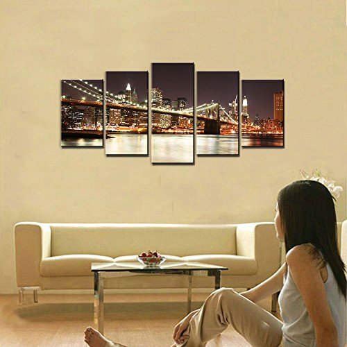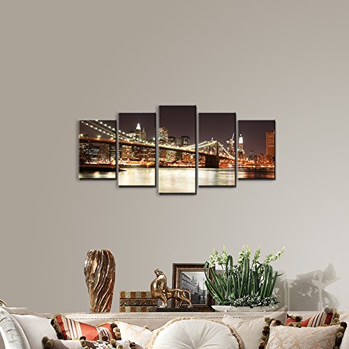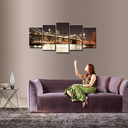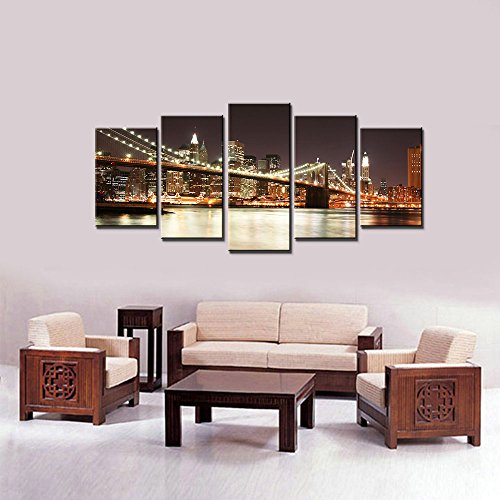-. Title : Wieco Art - the Brooklyn Bridge - Canvas P.R.Int Stretched and Framed Canvas Wall Art for Wall Decorationand Home Decoration Seascape Canvas Art P5RLA008