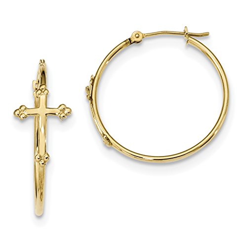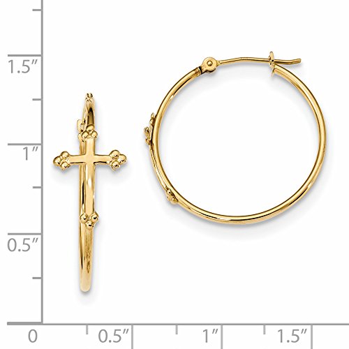 ICECARATS DESIGNER JEWELRY 14K YELLOW GOLD CROSS RELIGIOUS ON HOOPS
