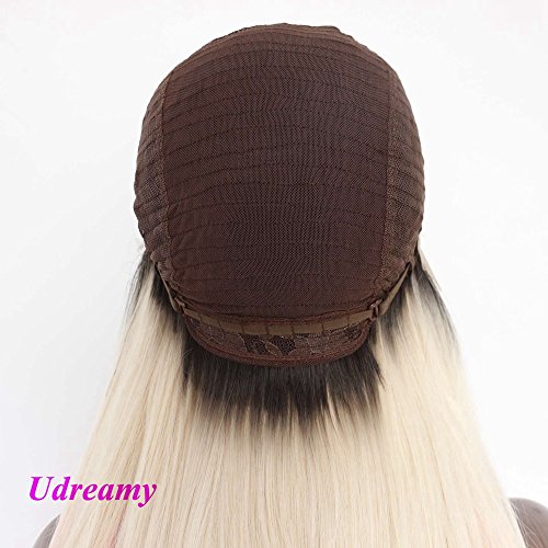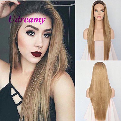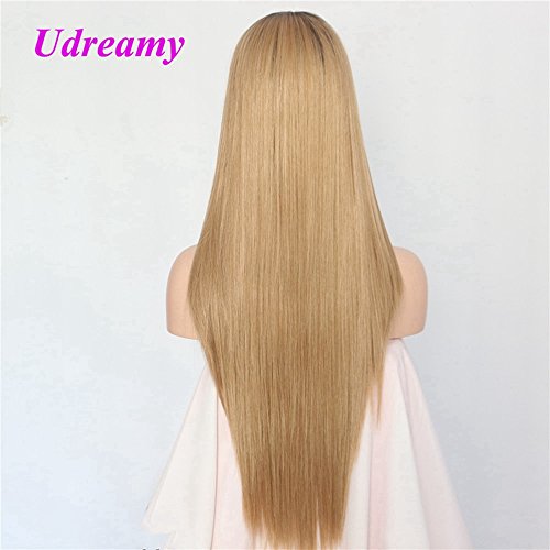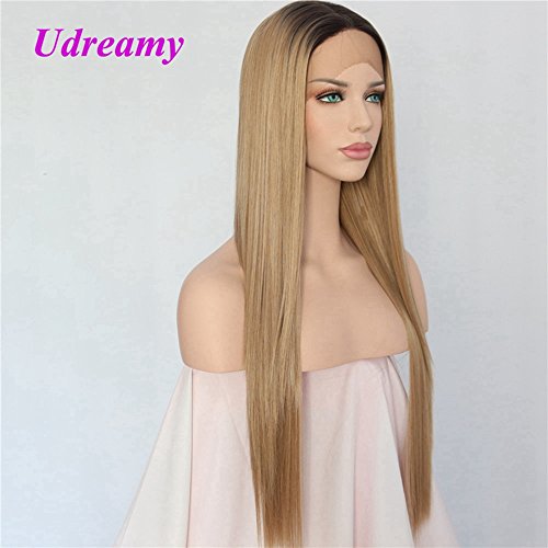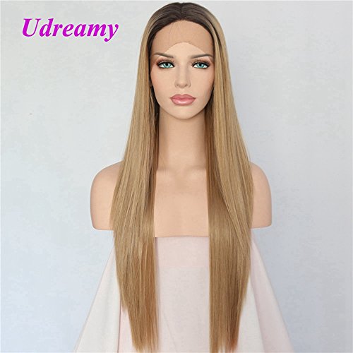 Udreamy Natural Straight Synthetic Lace Front Wig Ombre Brown To Blonde Heat Resistant Wigs For Women Christmas Party Wear 24 Inch